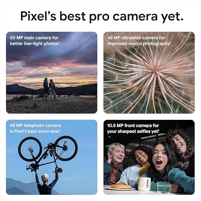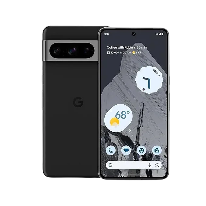 يأتي الهاتف بشاشة LTPO OLED عالية السطوع بمعدل تحديث 120Hz لتجربة مشاهدة ممتازة، ونظام كاميرات احترافي يلتقط صورًا دقيقة في مختلف الإضاءات. كما يتميّز Pixel 8 Pro بتحديثات أندرويد وأمان مباشرة من Google، وبطارية قوية مع شحن سريع ولاسلكي لتبقى متصلًا بثقة طوال اليوم.
